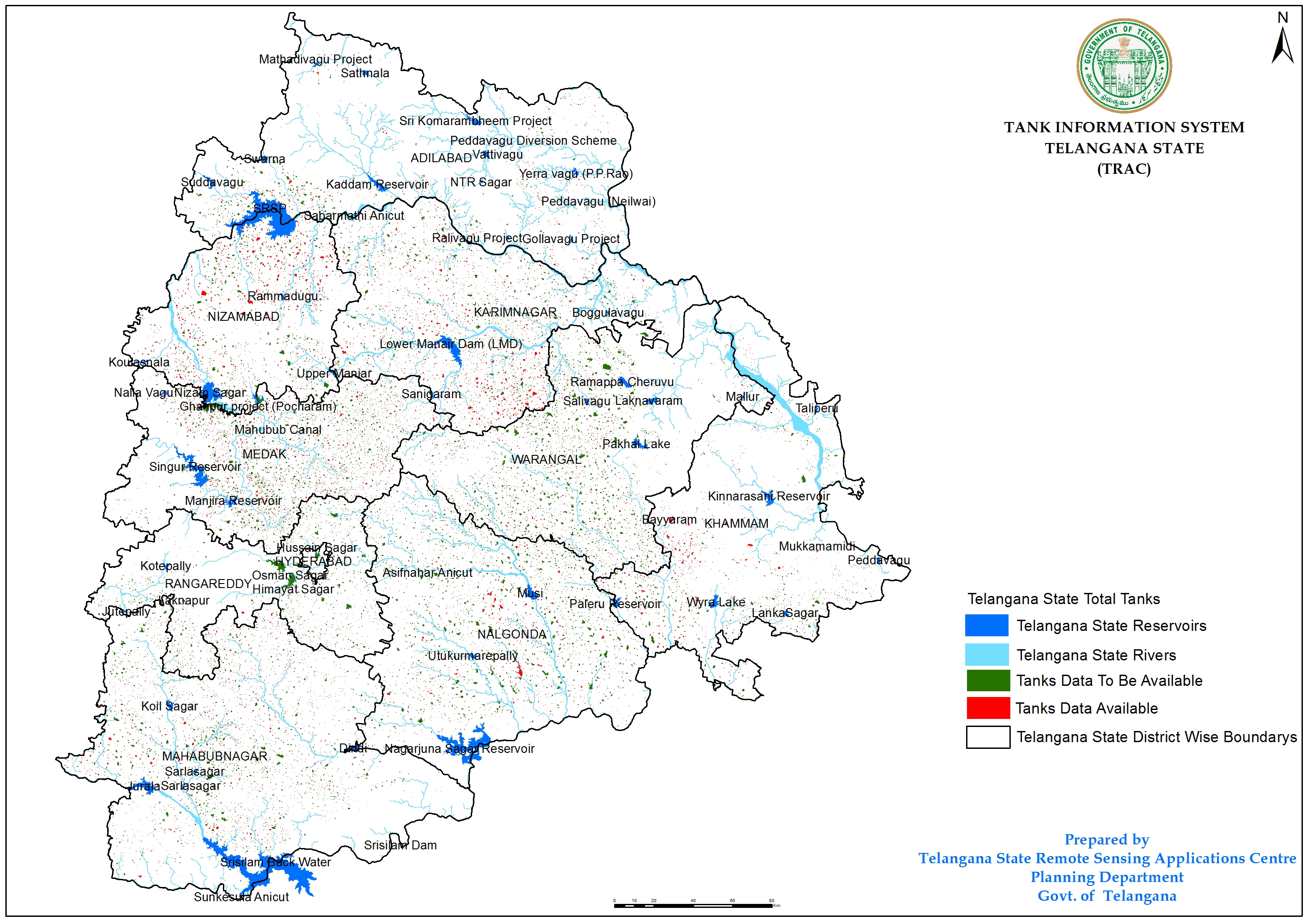 The Waterbodies belonging to Telangana state are being mapped by making use of Cadastral (Before 1940s), Toposheets (1940s to 1970s) and updation of new tanks and status of encroachment using temporal satellite data of 2014 and 2023 years.